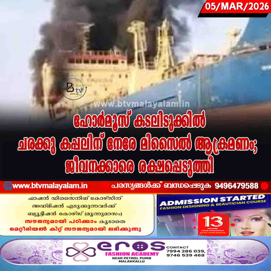 ലണ്ടൻ: മാൾട്ടയുടെ പതാക വഹിക്കുന്ന ചരക്കു കപ്പൽ സഫീൻ പ്രസ്റ്റീജിന് നേരെ ഹോർമൂസ് കടലിടുക്കിൽ വച്ച് മിസൈൽ ആക്രമണം ഉണ്ടായതായി റിപ്പോർട്ട്. രണ്ട് മിസൈലുകൾ പതിച്ച കപ്പലിൽ…