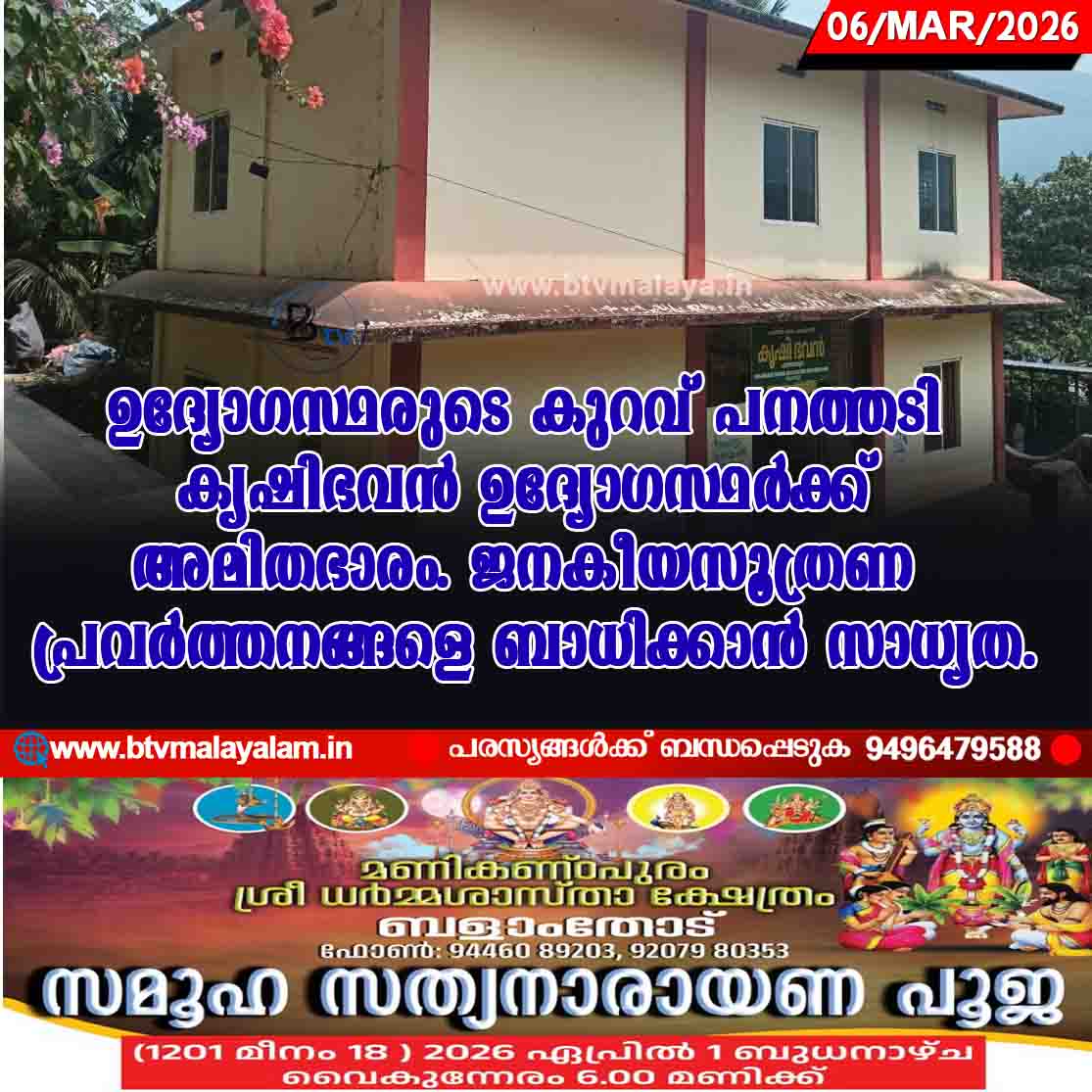 പാണത്തൂർ – ആവശ്യത്തിന് ജീവനക്കാർ ഇല്ലാത്തത് പനത്തടി കൃഷിഭവന്റെ പ്രവർത്തനത്തെ ബാധിക്കുന്നു. ഒരു കൃഷി ഓഫീസറും മൂന്ന് കൃഷി അസിസ്റ്റൻറ് വേണ്ടിടത്ത് ഇപ്പോൾ ഒരു കൃഷി ഓഫീസറും…