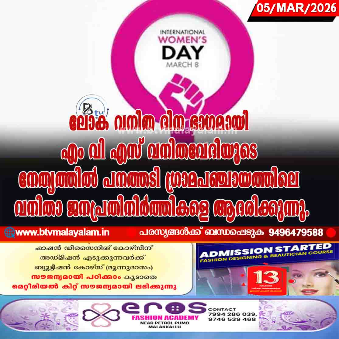 ലോക വനിത ദിന ഭാഗമായി എം വി എസ് വനിതവേദിയുടെ നേതൃത്തിൽ പനത്തടി ഗ്രാമപഞ്ചായത്തിലെ വനിതാ ജനപ്രതിനിർത്തികളെ ആദരിക്കുന്നു.പനത്തടി ഗ്രാമ പഞ്ചായത്ത് പ്രസിഡന്റ് പി രഘുനാഥ് പരിപാടി…