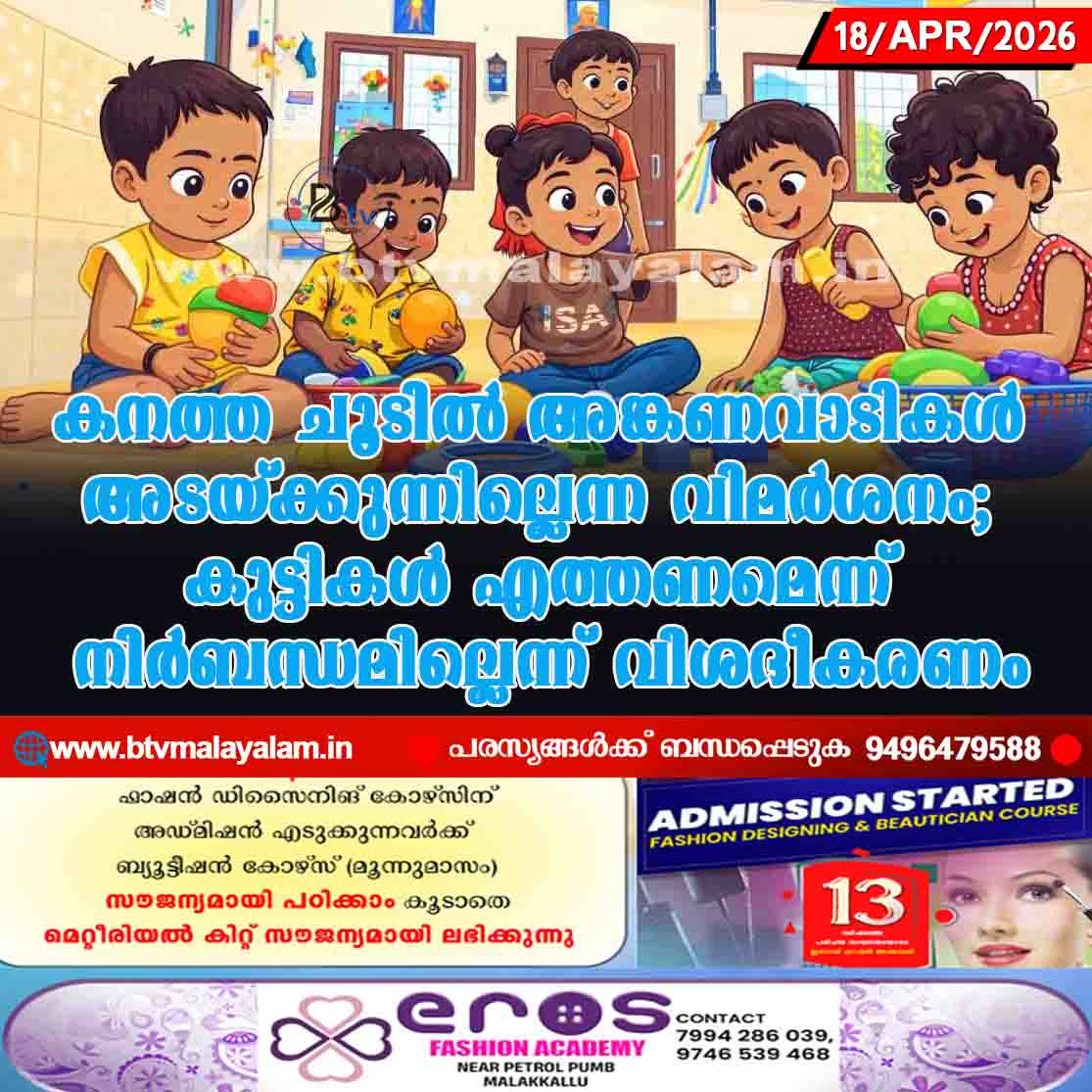 തിരുവനന്തപുരം: സംസ്ഥാനത്ത് കനത്ത ചൂട് തുടരുന്ന സാഹചര്യത്തിലും അങ്കണവാടികൾ അടയ്ക്കുന്നില്ലെന്ന വിമര്ശനത്തില് വിശദീകരണവുമായി വനിതാ ശിശുവികസന വകുപ്പ്. നിലവില് കുട്ടികള് അങ്കണവാടികളിൽ എത്തണമെന്ന് നിര്ബന്ധമില്ലെന്നും ആരോഗ്യപ്രശ്നങ്ങളോ മറ്റ്…