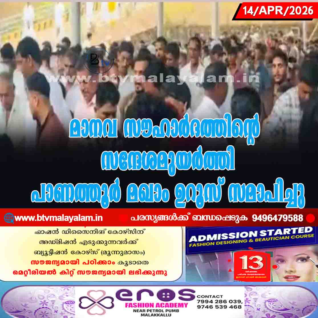 പാണത്തൂർ: ചരിത്രപ്രസിദ്ധമായ പാണത്തൂർ മഖാം ഉറൂസ് മുബാറക്കിന് ഭക്തിനിർഭരമായ സമാപനം. അഞ്ചുദിവസം നീണ്ടുനിന്ന ഉറൂസ് പരിപാടികൾ ഇന്ന് വൈകുന്നേരം നടന്ന വിപുലമായ അന്നദാനത്തോടെയാണ് സമാപിച്ചത്. നാനാജാതി മതസ്ഥർ…