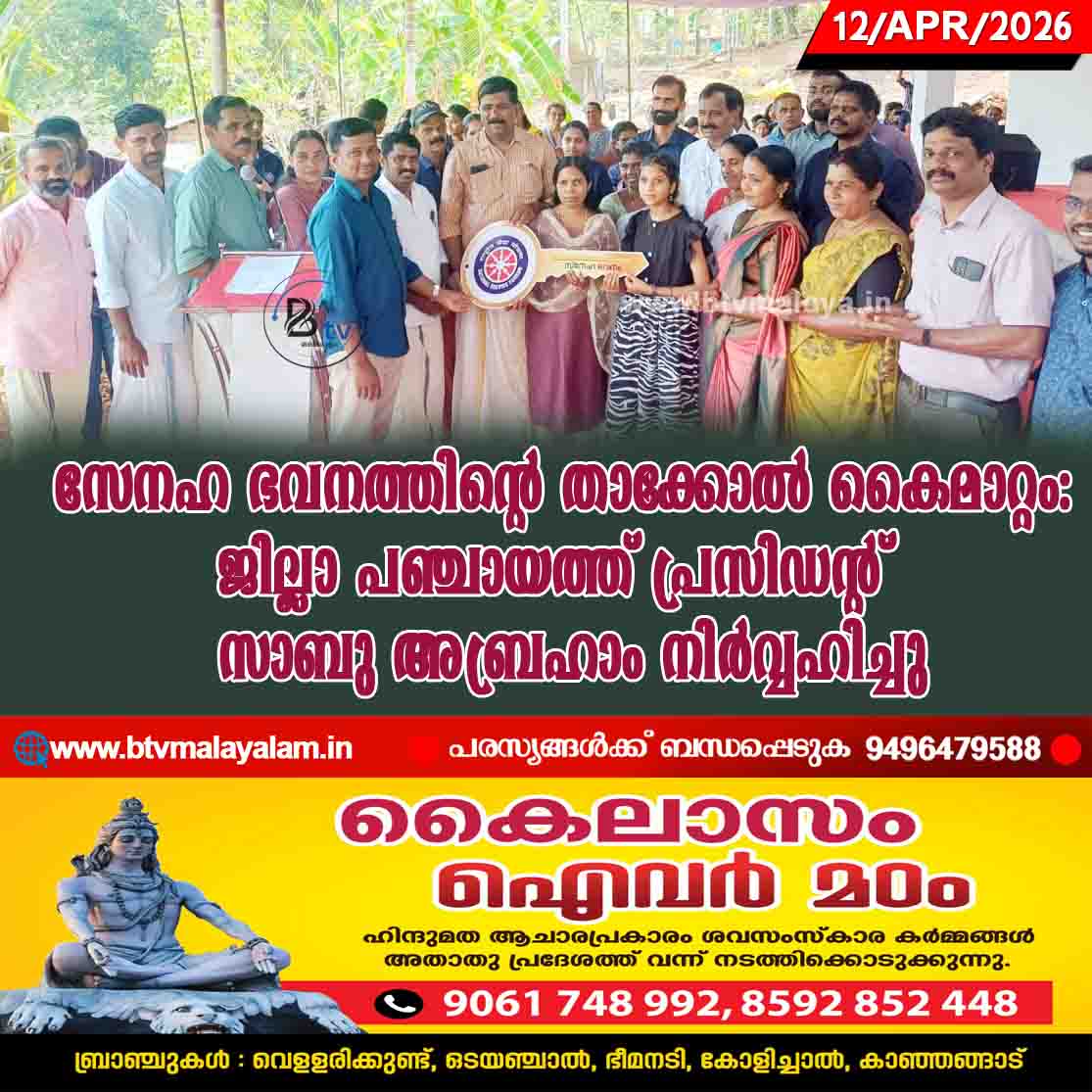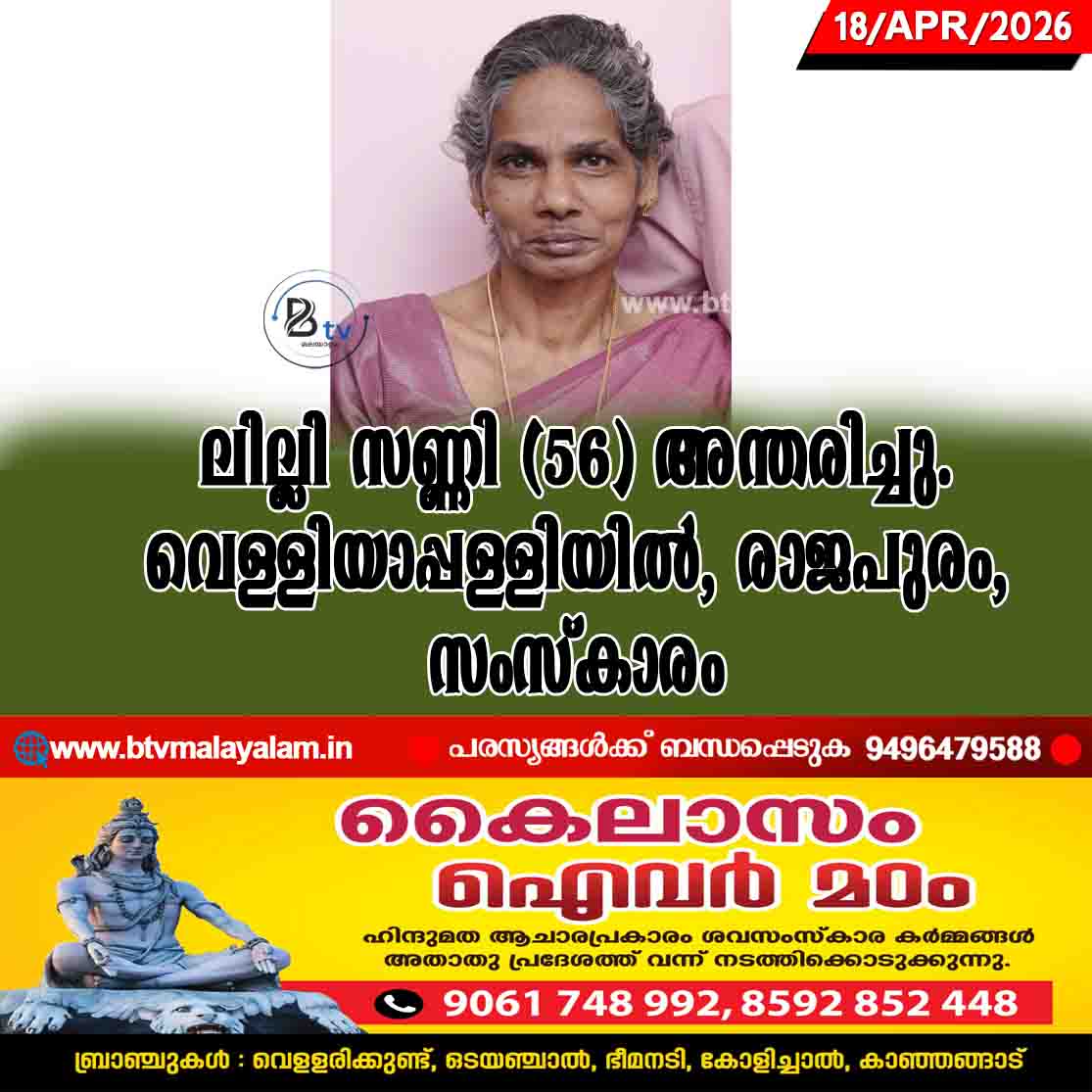 2026 ഏപ്രിൽ 20, 10.30 രാവിലെ @ രാജപുരം ഫോറോനാ ചർച്ച് പയ്യാവൂർ സെൻറ് ആൻസ് പള്ളി ഇടവക അംഗം, കീരിങ്ങാ മാക്കിൽ ഏലിക്കുട്ടിയുടെയും പരേതനായ ജോസഫിന്റെയും…