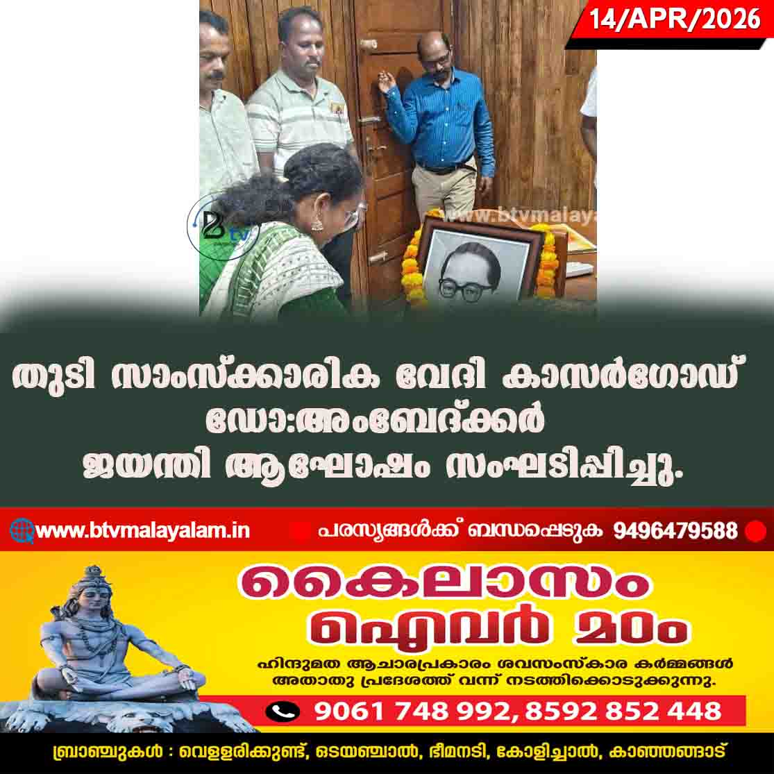കാഞ്ഞങ്ങാട്: തുടി സാംസ്ക്കാരിക വേദി കാസർഗോഡ് ഡോ:ബാബ സാഹേബ് അംബേദ്ക്കർ135- ജയന്തി ആഘോഷം സംഘടിപ്പിച്ചു. ചടങ്ങിൽ കമലാക്ഷൻ കക്കോൽ അദ്ധ്യക്ഷത വഹിച്ചു. പി വി , അംബിക…