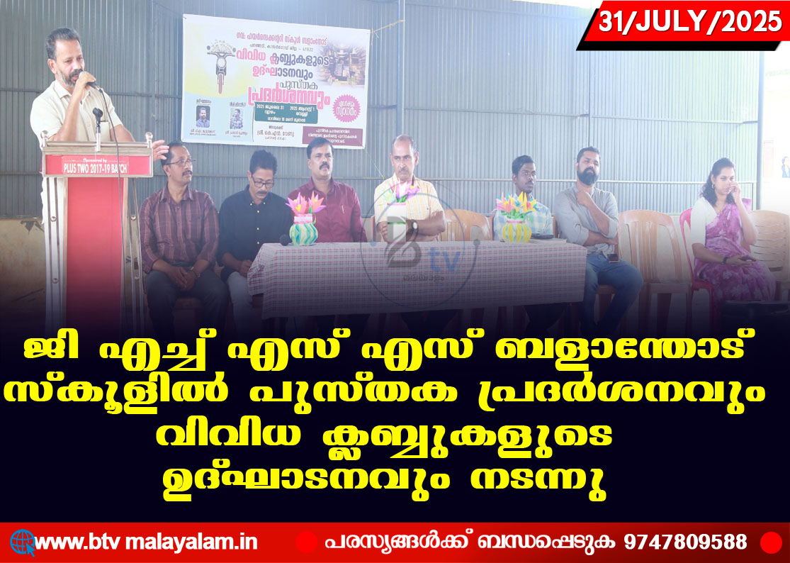 പനത്തടി:ജി എച്ച് എസ് എസ് ബളാന്തോട് സ്കൂളിൽ 2025 ജൂലൈ 31 വ്യാഴാഴ്ച്ച വിവിധ ക്ലബുകളുടെ ഉദ്ഘാടനവും അതിനോടനുബന്ധിച്ച് പുസ്തകവണ്ടിയുടെ പുസ്തക പ്രദർശനവും രണ്ട് ദിവസങ്ങളിലായി നടക്കുന്നു.…