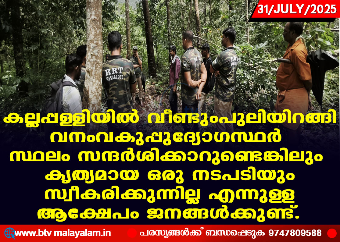 കല്ലപ്പള്ളി – പാണത്തൂർ കല്ലപ്പള്ളിയിൽ പുലികൾ വളർത്തു മൃഗങ്ങളെ പിടികൂടുന്നത് പതിവാകുന്നു. ഇന്നലെ കല്ലപ്പള്ളി പെരുമുണ്ടയിലെ പി.ബി പത്മയ്യയുടെ വളർത്തു പട്ടിയെ പുലി പിടികൂടി. രാവിലെ പട്ടിയെ…