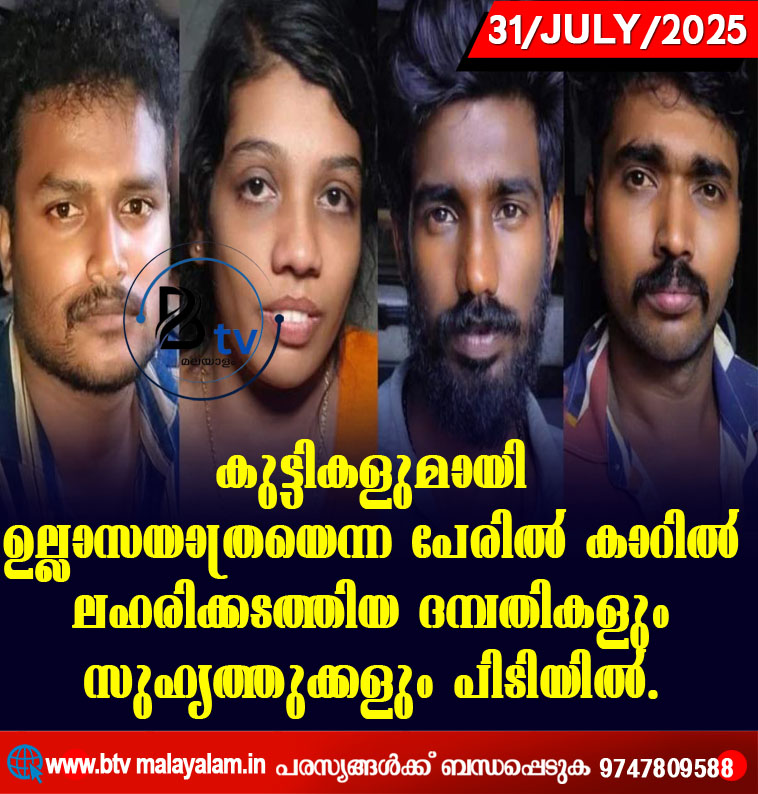 കോവളം: കുട്ടികളുമായി ഉല്ലാസയാത്രയെന്ന പേരില് കാറില് ലഹരിക്കടത്തിയ ദമ്പതികളും സുഹൃത്തുക്കളും പിടിയില്. നഗരത്തിലും ഗ്രാമീണ മേഖലകളിലും വില്പ്പന നടത്തുന്നതിനായി കടത്തിക്കൊണ്ടുവന്ന എംഡിഎംഎയും ഹൈബ്രിഡ് കഞ്ചാവുമാണ് കാറില് നിന്ന്…