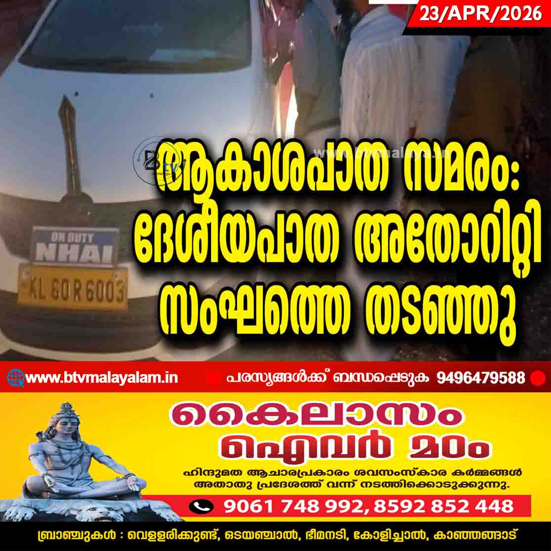 കേരള വാർത്ത ചിറ്റാരിക്കാല്: ഭര്ത്താവിന്റെ മരണത്തില് മാനസീകവിഷമത്തില് കഴിഞ്ഞിരുന്ന ഭാര്യ ആസിഡ് കഴിച്ച് മരിച്ചു. B TV Malayalam Apr 8, 2026