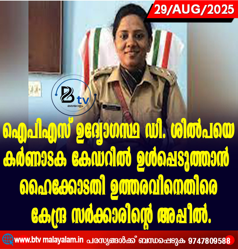 ദില്ലി: കേരള കേഡറിലുള്ള ഐപിഎസ് ഉദ്യോഗസ്ഥ ഡി. ശിൽപയെ കര്ണാടക കേഡറില് ഉള്പ്പെടുത്താന് ഹൈക്കോടതി ഉത്തരവിനെതിരെ കേന്ദ്ര സർക്കാരിന്റെ അപ്പീൽ. സുപ്രീംകോടതിയിൽ കേന്ദ്രം ഇതുസംബന്ധിച്ച് അപ്പീൽ സമർപ്പിച്ചു.…
