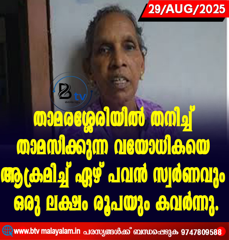 കോഴിക്കോട്: താമരശ്ശേരിയില് തനിച്ച് കഴിയുന്ന വയോധികയെ ആക്രമിച്ച് സ്വര്ണവും പണവും കവര്ന്നതായി പരാതി. കതിരോട് ഓടര്പൊയില് വത്സലയുടെ വീട്ടിലാണ് മോഷണം നടന്നത്. ഏഴ് പവന് തൂക്കമുള്ള സ്വര്ണാഭരണങ്ങളും…