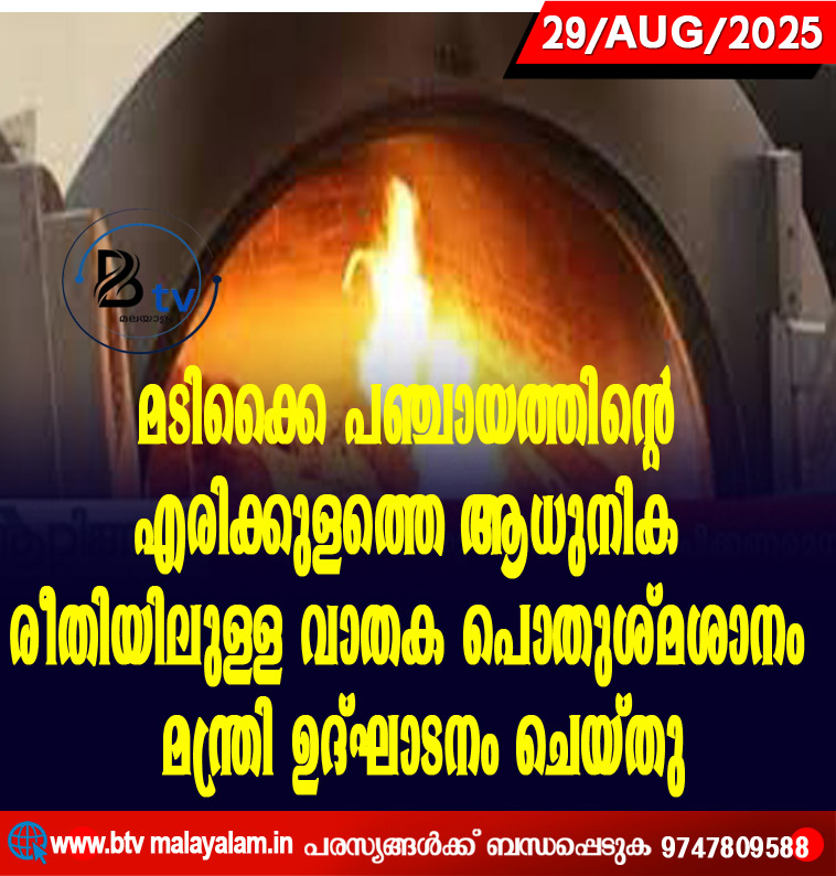 മടിക്കൈ പഞ്ചായത്തിന്റെ എരിക്കുളത്തെ ആധുനിക രീതിയിലുള്ള വാതക പൊതുശ്മശാനം സ്മൃതിതീരം രജിസ്ട്രേഷന്, പുരാവസ്തു, പുരാരേഖ, മ്യൂസിയം വകുപ്പ് മന്ത്രി രാമചന്ദ്രന് കടന്നപ്പളളി ഉദ്ഘാടനം ചെയ്തു. ഇ.ചന്ദ്രശേഖരന് എംഎല്എ…