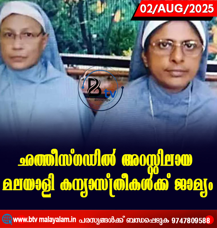 ന്യൂഡല്ഹി: ഛത്തീസ്ഗഢില് അറസ്റ്റിലായ മലയാളി കന്യാസ്ത്രീകള്ക്ക് ജാമ്യം. ബിലാസ്പൂര് എന്ഐഎ കോടതിയാണ് കണ്ണൂർ തലശ്ശേരി ഉദയഗിരി ഇടവകയിൽ നിന്നുള്ള സിസ്റ്റർ വന്ദന ഫ്രാൻസിസ്, അങ്കമാലി എളവൂർ ഇടവക…