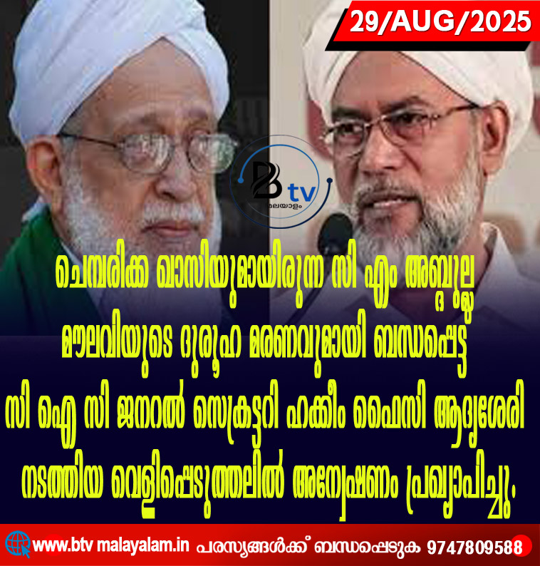 കാസര്കോട് | ഇ കെ വിഭാഗം സമസ്ത ഉപാധ്യക്ഷനും ചെമ്പരിക്ക ഖാസിയുമായിരുന്ന സി എം അബ്ദുല്ല മൗലവിയുടെ ദുരൂഹ മരണവുമായി ബന്ധപ്പെട്ട് സി ഐ സി ജനറല്…