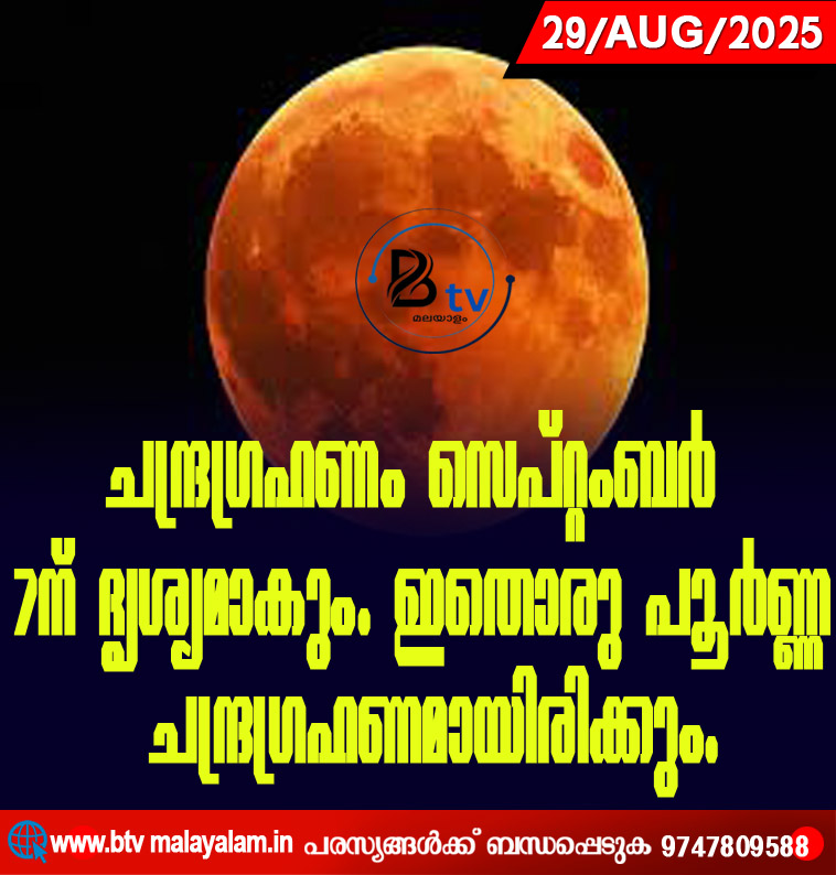 2025ലെ രണ്ടാമത്തെ ചന്ദ്രഗ്രഹണം സെപ്റ്റംബർ 7ന് ദൃശ്യമാകും. ഇതൊരു പൂർണ്ണ ചന്ദ്രഗ്രഹണമായിരിക്കും. ഈ സമയത്ത് ചന്ദ്രൻ കടുംചുവപ്പ് നിറത്തിലുള്ള ഗോളമായി മാറും. ഈ അപൂർവ രക്തചന്ദ്രനെ (ബ്ലഡ്…
