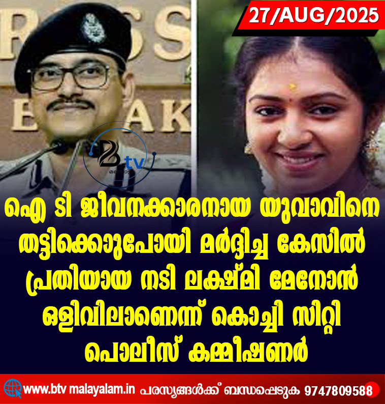കൊച്ചി: ഐ ടി ജീവനക്കാരനായ യുവാവിനെ തട്ടിക്കൊണ്ടുപോയി മര്ദ്ദിച്ച കേസില് പ്രതിയായ നടി ലക്ഷ്മി മേനോന് ഒളിവിലാണെന്ന് കൊച്ചി സിറ്റി പൊലീസ് കമ്മീഷണര് പുട്ട വിമലാദിത്യ. നടിയുടെ…