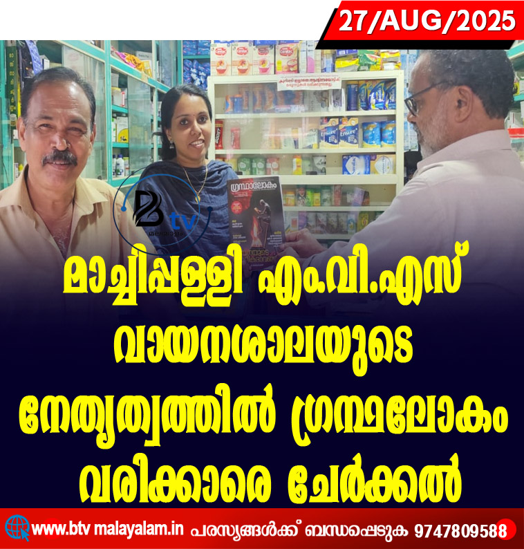 മാച്ചിപ്പള്ളി എം.വി.എസ് വായനശാലയുടെ നേതൃത്വത്തിൽ ഗ്രന്ഥലോകം വരിക്കാരെ ചേർക്കലും പുതിയ വരികരെ പരിചയപെടുത്തലും നടന്നു . ബളാന്തോട്: ലൈബ്രറി കൗസിൺ ഗ്രന്ഥാലോകം ക്യാമ്പയിൻ്റെ ഭാഗമായി മാച്ചിപ്പള്ളി എം.വി…
