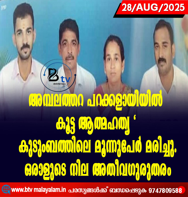 കാഞ്ഞങ്ങാട്: അമ്പലത്തറ – പോലീസ് സ്റ്റേഷൻ പരിധിയിൽ ഒരു കുടുംബത്തിലെ മൂന്നുപേർ ആസിഡ് മരിച്ചു. ഒരാളുടെ നില അതീവഗുരുതരം. അമ്പലത്തറ, പറക്കളായി ഒണ്ടാം പുളിയിലെ ഗോപി (60),…
