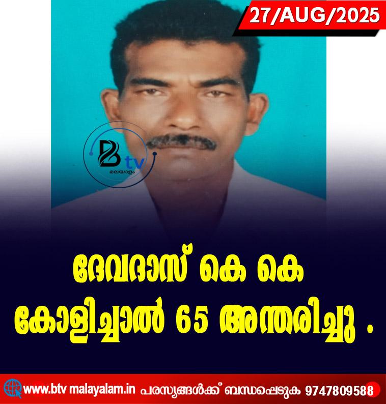 ദേവദാസ് കെ കെ കോളിച്ചാൽ വയസ് 65 അന്തരിച്ചു . ഭാര്യ രാധ മക്കൾ ശ്രീ ദേവി, രമാദേവി, സുധദേവി, മരുമക്കൾ രാഘവൻ ചെമ്മട്ടം വയൽ, രാജേഷ്…