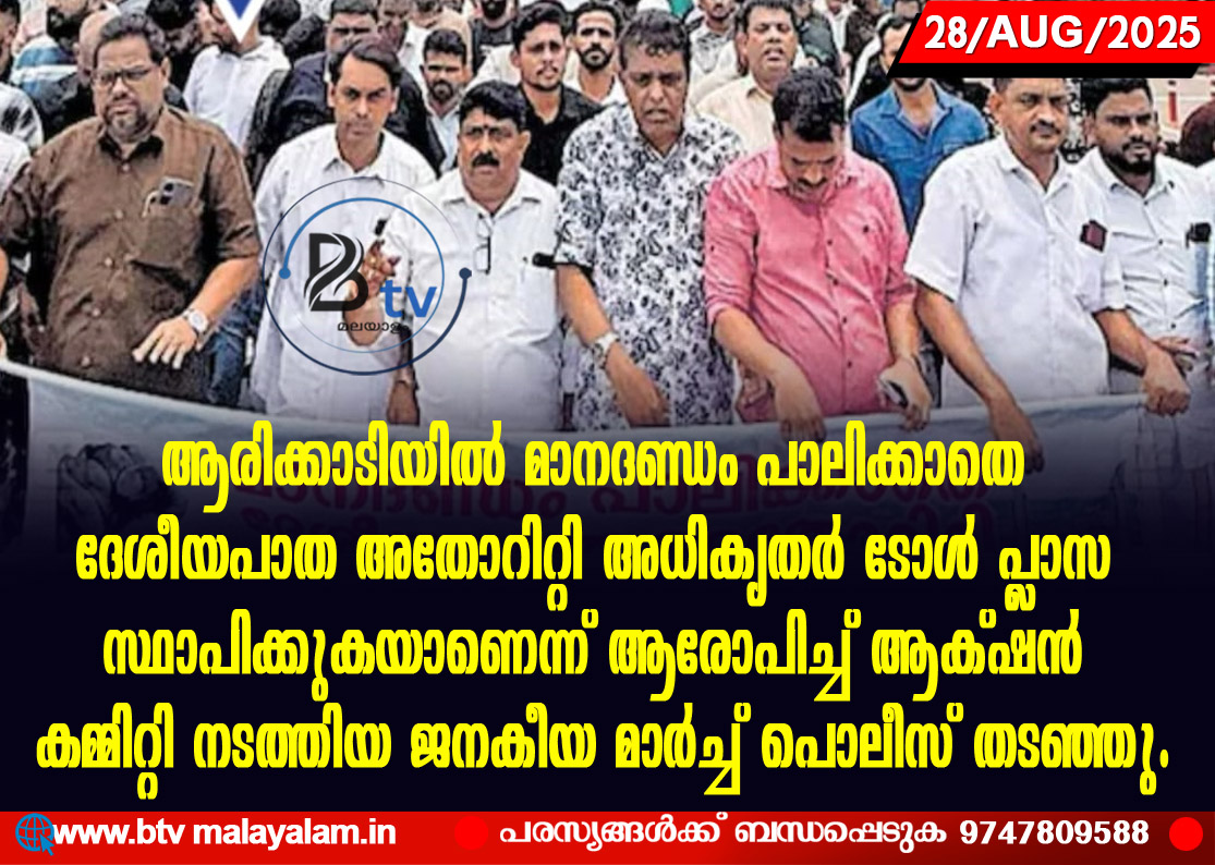 കുമ്പള∙ ദേശീയപാത 66–ലെ കുമ്പള ആരിക്കാടിയിൽ മാനദണ്ഡം പാലിക്കാതെ ദേശീയപാത അതോറിറ്റി അധികൃതർ ടോൾ പ്ലാസ സ്ഥാപിക്കുകയാണെന്ന് ആരോപിച്ച് ആക്ഷൻ കമ്മിറ്റി നടത്തിയ ജനകീയ മാർച്ച് പൊലീസ്…