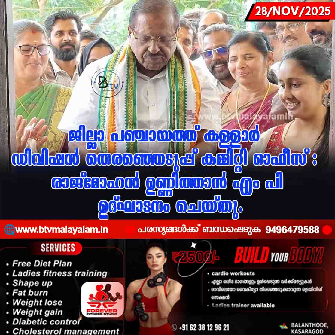 രാജപുരം: കാസർകോട് ജില്ലാ പഞ്ചായത്തിലേക്ക് കള്ളാർ ഡിവിഷനിൽ നിന്നും മത്സരിക്കുന്ന യുഡിഎഫ് സ്ഥാനാർഥി സ്റ്റിമി സ്റ്റീഫന്റെ തെരഞ്ഞെടുപ്പ് കമ്മിറ്റി ഓഫീസ് ചുള്ളിക്കര ബ്ലോക്ക് കോൺഗ്രസ് കമ്മിറ്റി ഓഫീസിൽ…