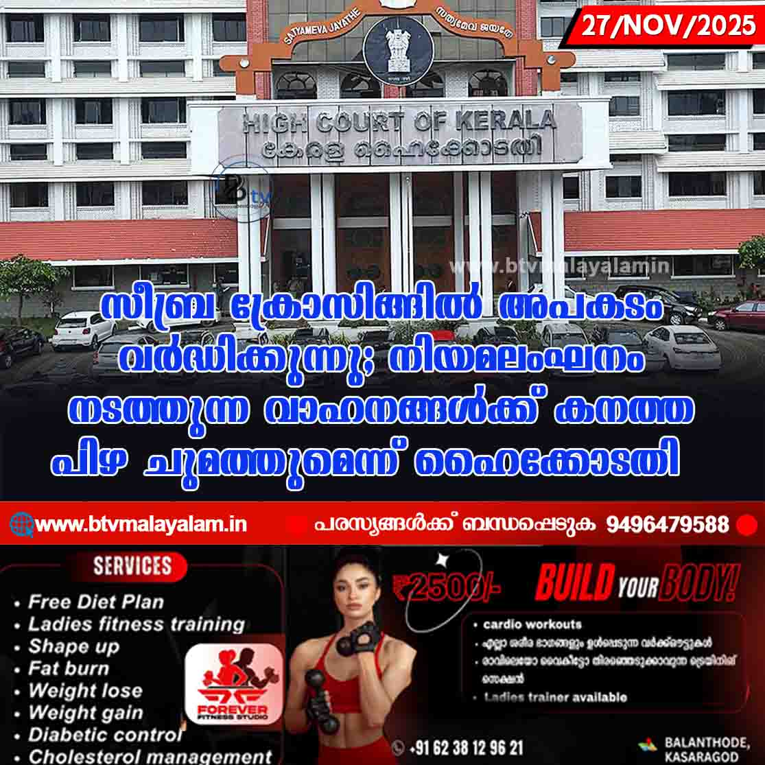 സീബ്ര ക്രോസ്സിങ്ങിൽ അപകടങ്ങൾ വർദ്ധിക്കുന്നു എന്ന് കേരള ഹൈക്കോടതി. സീബ്ര ക്രോസ്സിങ്ങുമായി ബന്ധപ്പെട്ട് മാത്രം കഴിഞ്ഞ ഒരു മാസം രജിസ്റ്റർ ചെയ്തത് 901 നിയമലംഘങ്ങളാണ്. ഓരോ ജീവനും…