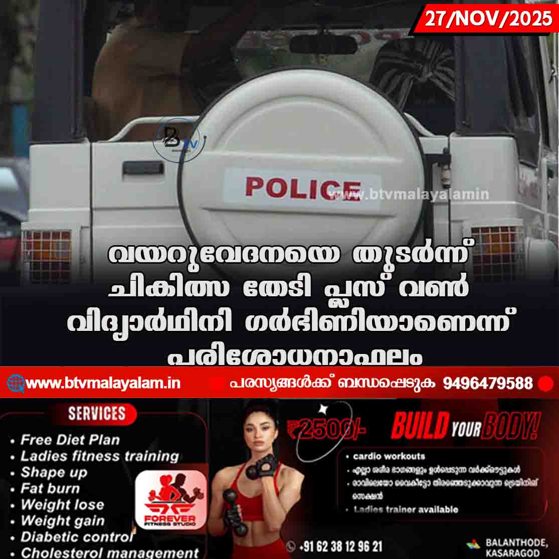 കാസര്കോട്: വയറുവേദനയെത്തുടര്ന്ന് ചികിത്സ തേടിയ പതിനാറുകാരിയായ പ്ലസ് വണ് വിദ്യാര്ഥിനി ഗര്ഭിണി. സംഭവത്തില്. സീനിയര് വിദ്യാര്ഥിയായ പത്തൊന്പതുകാരനെതിരെ പോക്സോ നിയമപ്രകാരം കേസെടുത്തു. ഹോസ്റ്റലില് താമസിക്കുന്ന പെണ്കുട്ടി അവധിക്ക്…