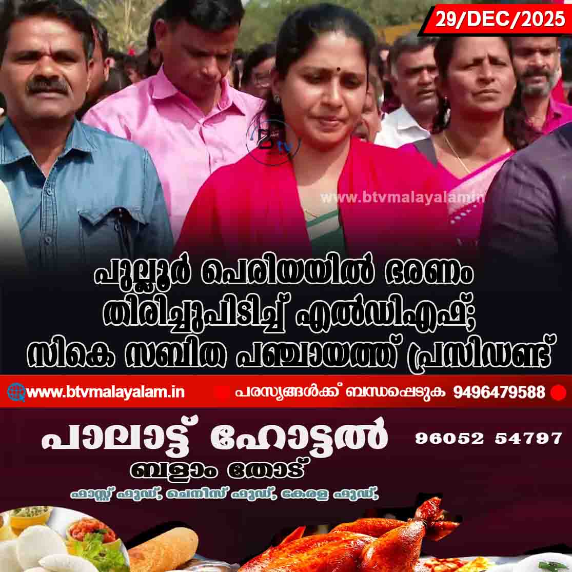 കാഞ്ഞങ്ങാട്:പുല്ലൂർ പെരിയ പഞ്ചായത്ത് ഭരണം തിരിച്ചുപിടിച്ച് എൽഡിഎഫ്. ഡോ.സി.കെ സബിത പ്രസിഡണ്ടായി തെരഞ്ഞെടുക്കപ്പെട്ടു. നറുക്കെടുപ്പിലൂടെയാണ് പ്രസിഡന്റിനെ തിരഞ്ഞെടുത്തത്. പഞ്ചായത്ത് ഭരണസമിതിയിൽ എൽഡിഎഫും യുഡിഎഫും 9 വിധം സീറ്റുകൾ…