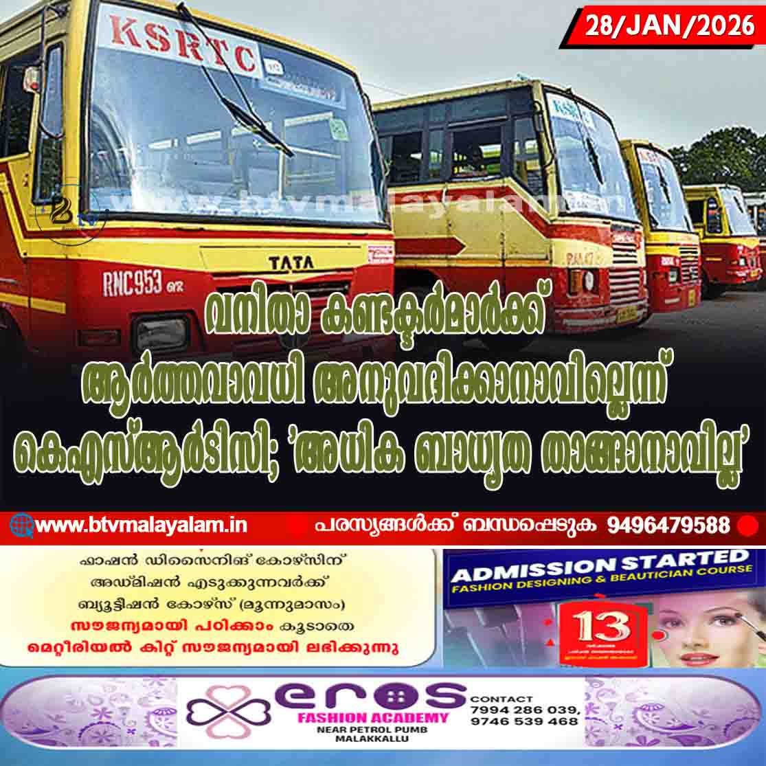 തിരുവനന്തപുരം: വനിതാ കണ്ടക്ടര്മാര്ക്ക് ആര്ത്തവാവധി അനുവദിക്കാനാവില്ലെന്ന് കെഎസ്ആര്ടിസി. കോര്പ്പറേഷന് ഇത്തരമൊരു അധിക ബാധ്യത താങ്ങാനാവില്ലെന്ന് കെഎസ്ആര്ടിസി വ്യക്തമാക്കി. ആര്ത്തവാവധി ആവശ്യപ്പെട്ടുള്ള വനിതാ ജീവനക്കാരുടെ ഹര്ജിയിലാണ് കെഎസ്ആര്ടിസി നിലപാടറിയിച്ചത്.…