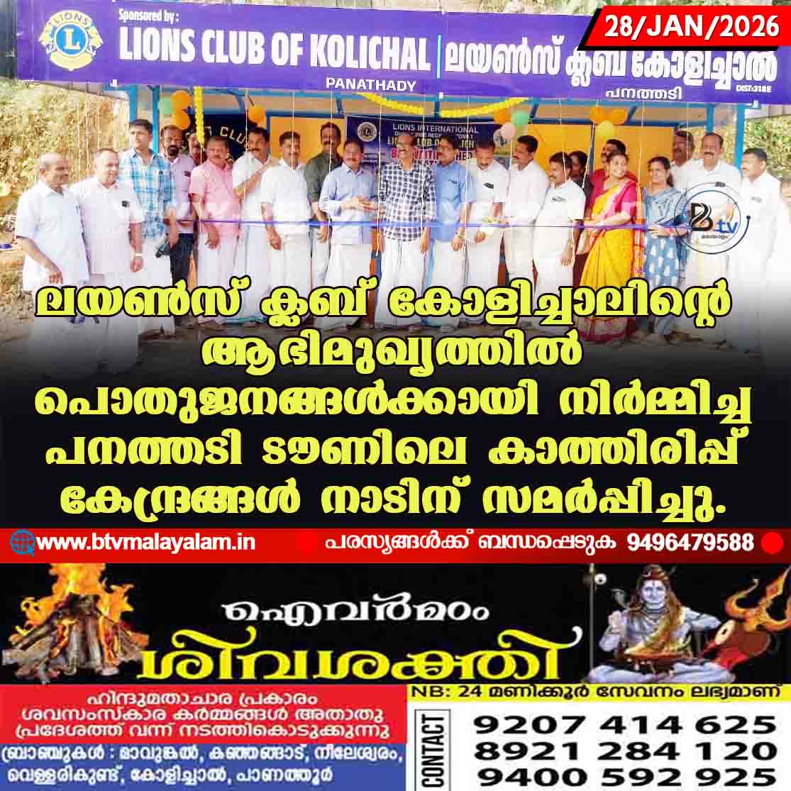 പാണത്തൂർ :പനത്തടി ടൗണിലും സെന്റ് മേരീസ് ഇംഗ്ലീഷ് മീഡിയം സ്കൂൾ ജംഗ്ഷനിലുമായാണ് ഏകദേശം രണ്ട് ലക്ഷം രൂപ ചെലവഴിച്ച് ആധുനിക രീതിയിലുള്ള വെയിറ്റിംഗ് ഷെഡുകൾ നിർമ്മിച്ചത്.സെന്റ് മേരീസ്…