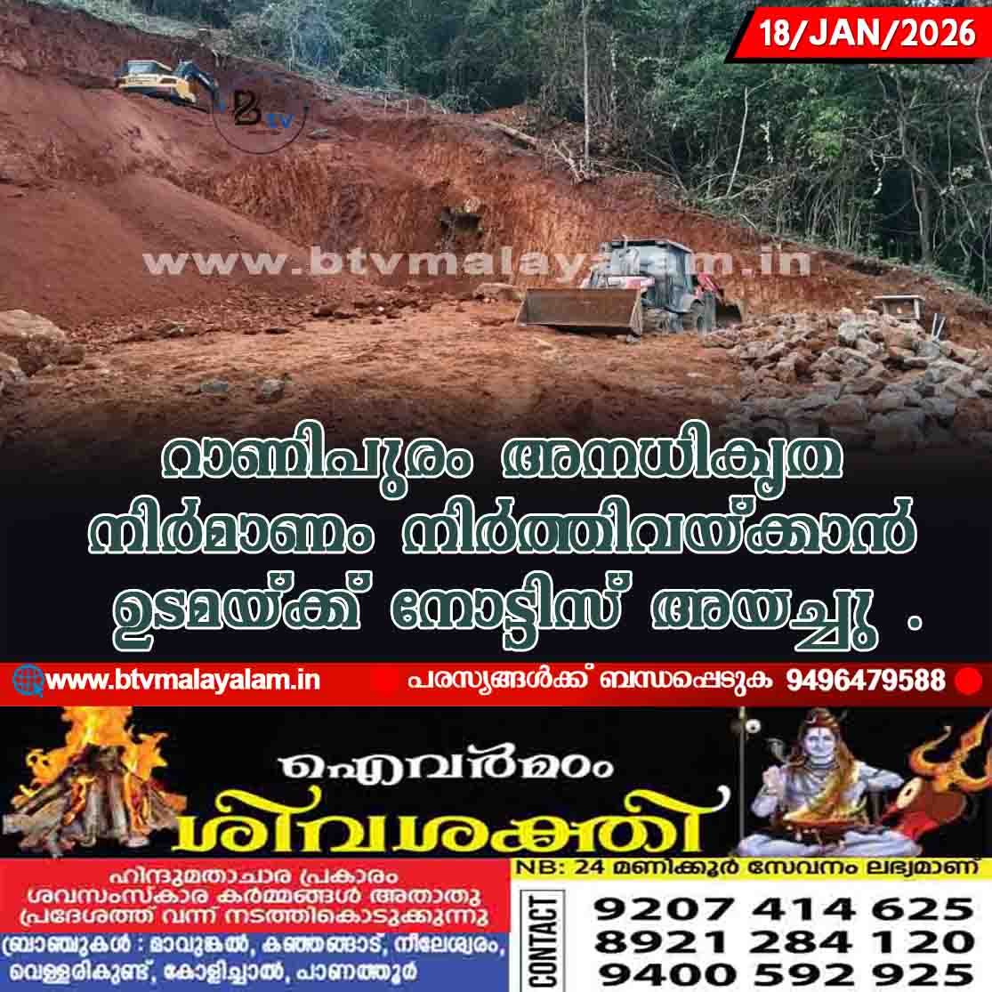 റാണിപുരം അനധികൃത നിർമാണം നിർത്തിവയ്ക്കാൻ ഉടമയ്ക്ക് നോട്ടിസ് അയച്ചു .