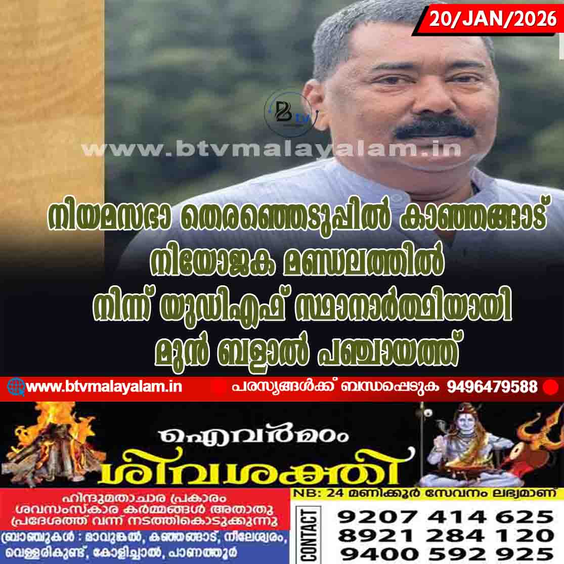 നിയമസഭാ തെരഞ്ഞെടുപ്പിൽ കാഞ്ഞങ്ങാട് നിയോജക മണ്ഡലത്തിൽ നിന്ന് യുഡിഎഫ് സ്ഥാനാർത്ഥിയായി മുൻ ബളാൽ പഞ്ചായത്ത്
