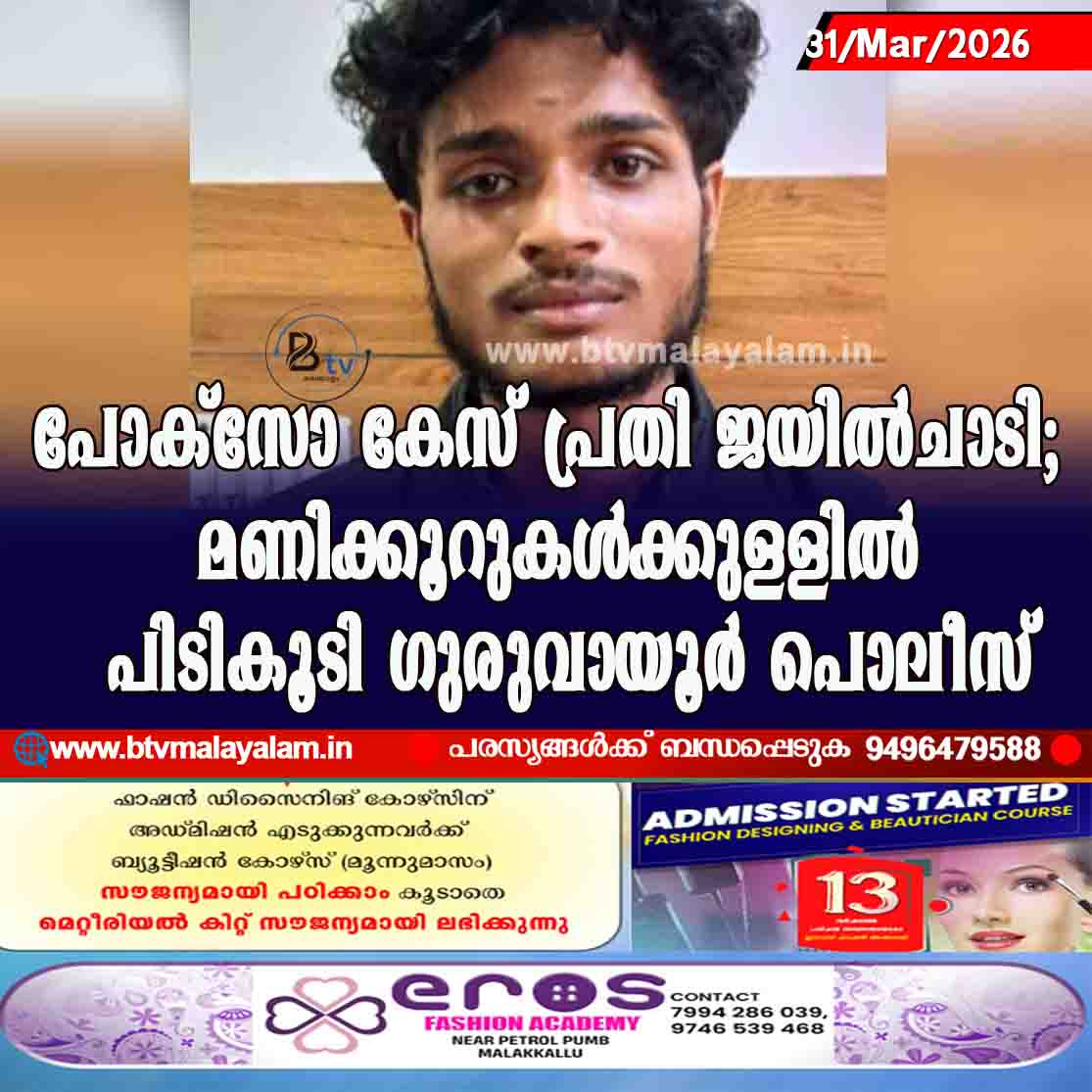 ചാവക്കാട്: സബ് ജയിലില് നിന്ന് ചാടിപ്പോയ പ്രതിയെ മണിക്കൂറുകള്ക്കകം പിടികൂടി ഗുരുവായൂര് പൊലീസ്. മലപ്പുറം എടക്കര പലേമാട് പുതിയത്ത് ശ്രീരാജ് (22) എന്ന റിമാന്ഡ് പ്രതിയാണ് ജയില്…