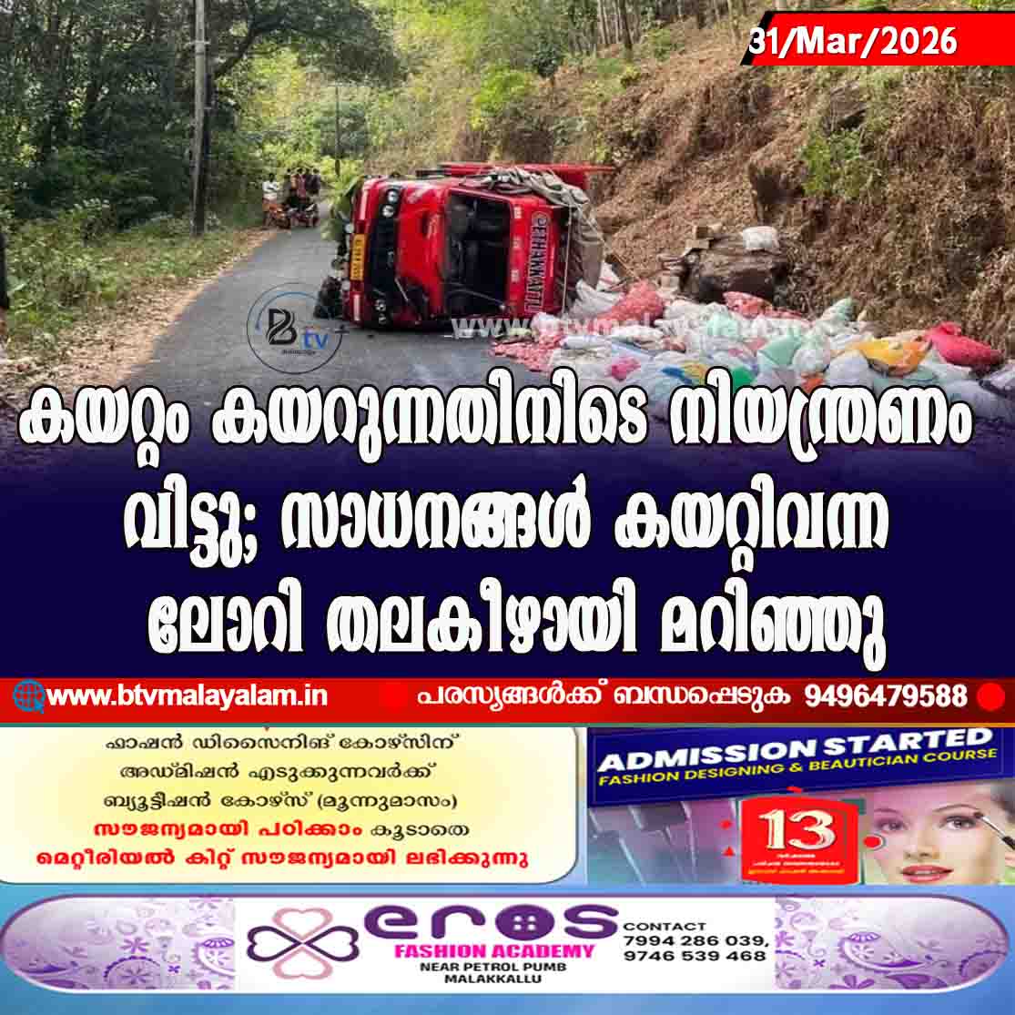 രാജപുരം: ബളാൽ – രാജപുരം റോഡിൽ സാധനങ്ങൾ കയറ്റി വന്ന ലോറി മറിഞ്ഞു. കോട്ടക്കുന്ന് ഭാഗത്തെ കുത്തനെയുള്ള കയറ്റം കയറുന്നതിനിടെയാണ് ചുവന്ന നിറത്തിലുള്ള ലോറി നിയന്ത്രണം വിട്ട്…