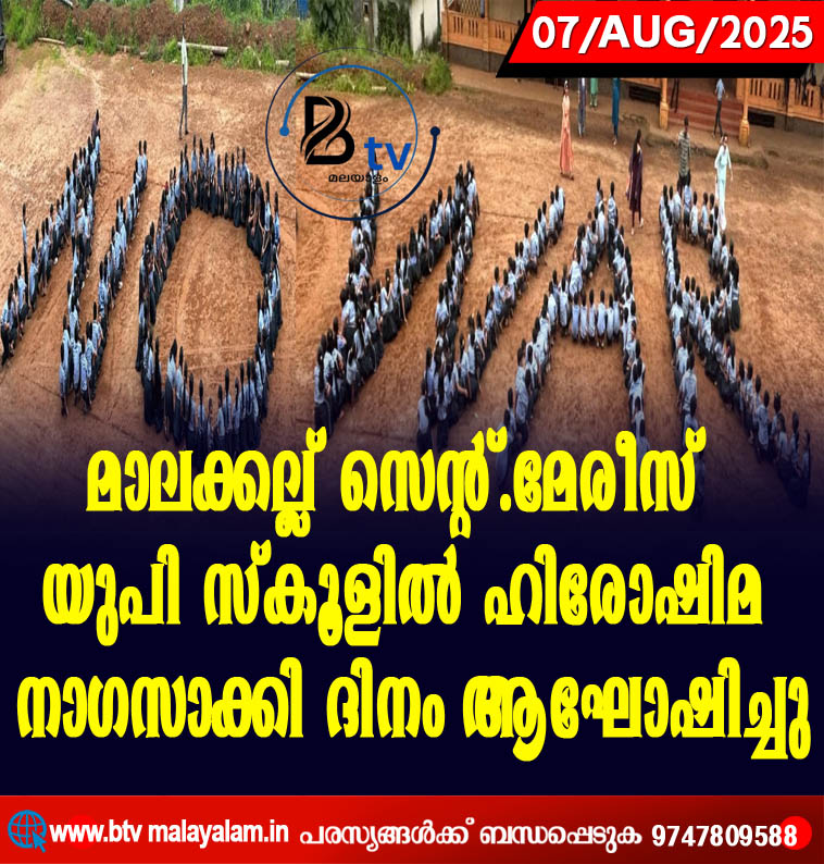 മാലക്കല്ല് സെൻ്റ്.മേരീസ് യുപി സ്കൂളിൽ ഹിരോഷിമ നാഗസാക്കി ദിനങ്ങളോട് അനുബന്ധിച്ച് 500 ലേറെ കുട്ടികൾ അണിനിരന്ന് “നോ വാർ” ഡിസ്പ്ലേ ക്യാമ്പയിൻ നടത്തപ്പെട്ടു