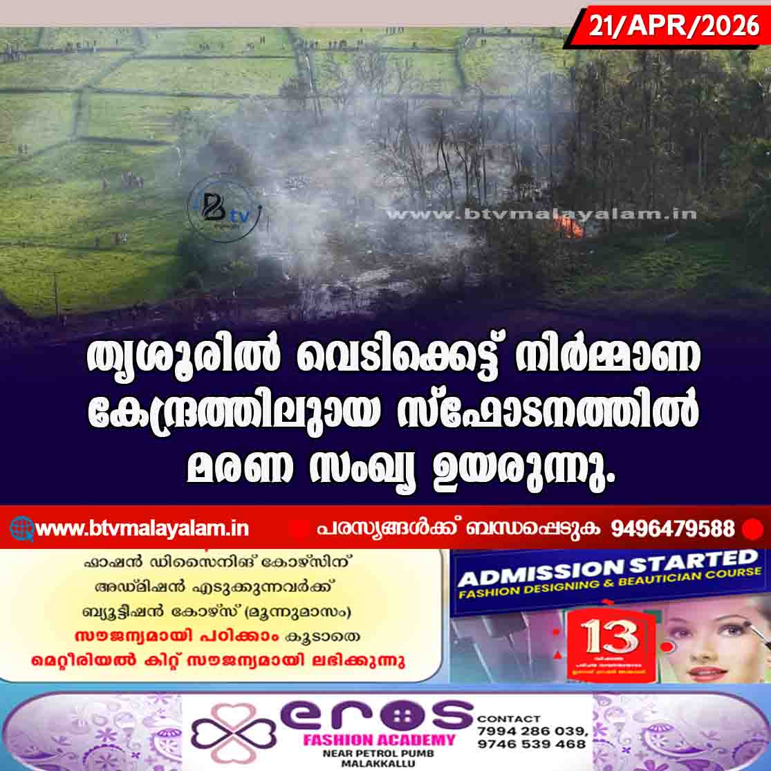 തൃശൂര്: തൃശൂരില് വെടിക്കെട്ട് നിര്മ്മാണ കേന്ദ്രത്തിലുണ്ടായ സ്ഫോടനത്തില് മരണ സംഖ്യ ഉയരുന്നു. മരിച്ചവരുടെ എണ്ണം പന്ത്രണ്ടായി. നാല്പതോളം പേര്ക്ക് പരിക്കേറ്റിട്ടുണ്ട്. ഗുരുതരമായി പരിക്കേറ്റവരെ തൃശൂര് മെഡിക്കല് കോളേജ്…