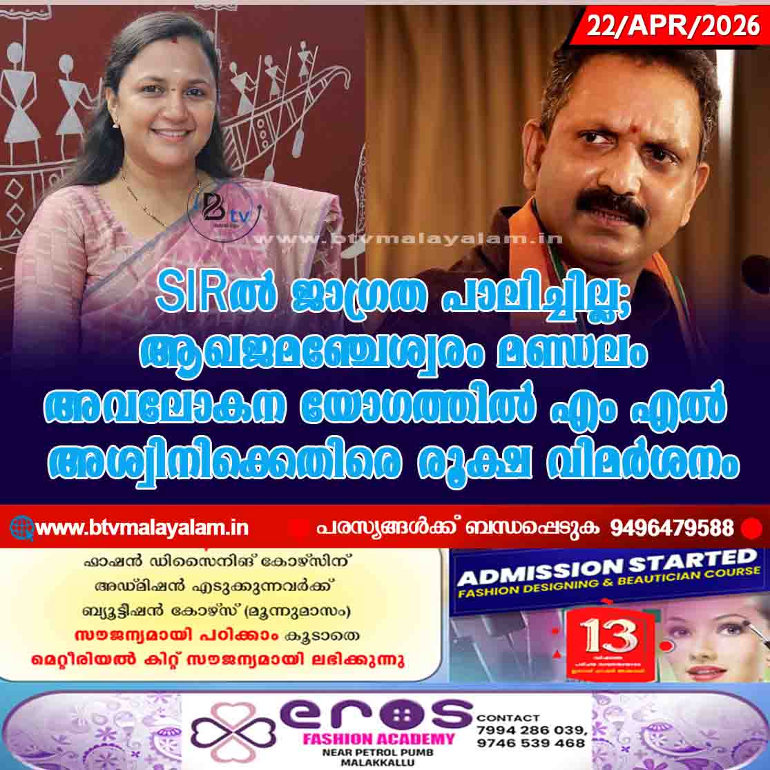 കാസര്കോട്: ബിജെപി മഞ്ചേശ്വരം മണ്ഡലം അവലോകന യോഗത്തില് കാസര്കോട് സ്ഥാനാര്ത്ഥി എം എല് അശ്വിനിക്കെതിരെ രൂക്ഷ വിമര്ശനം. എസ്ഐആറില് ജില്ലാ നേതൃത്വം ജാഗ്രത പാലിച്ചില്ലെന്നാണ് വിമര്ശനം. അശ്വിനിക്ക്…