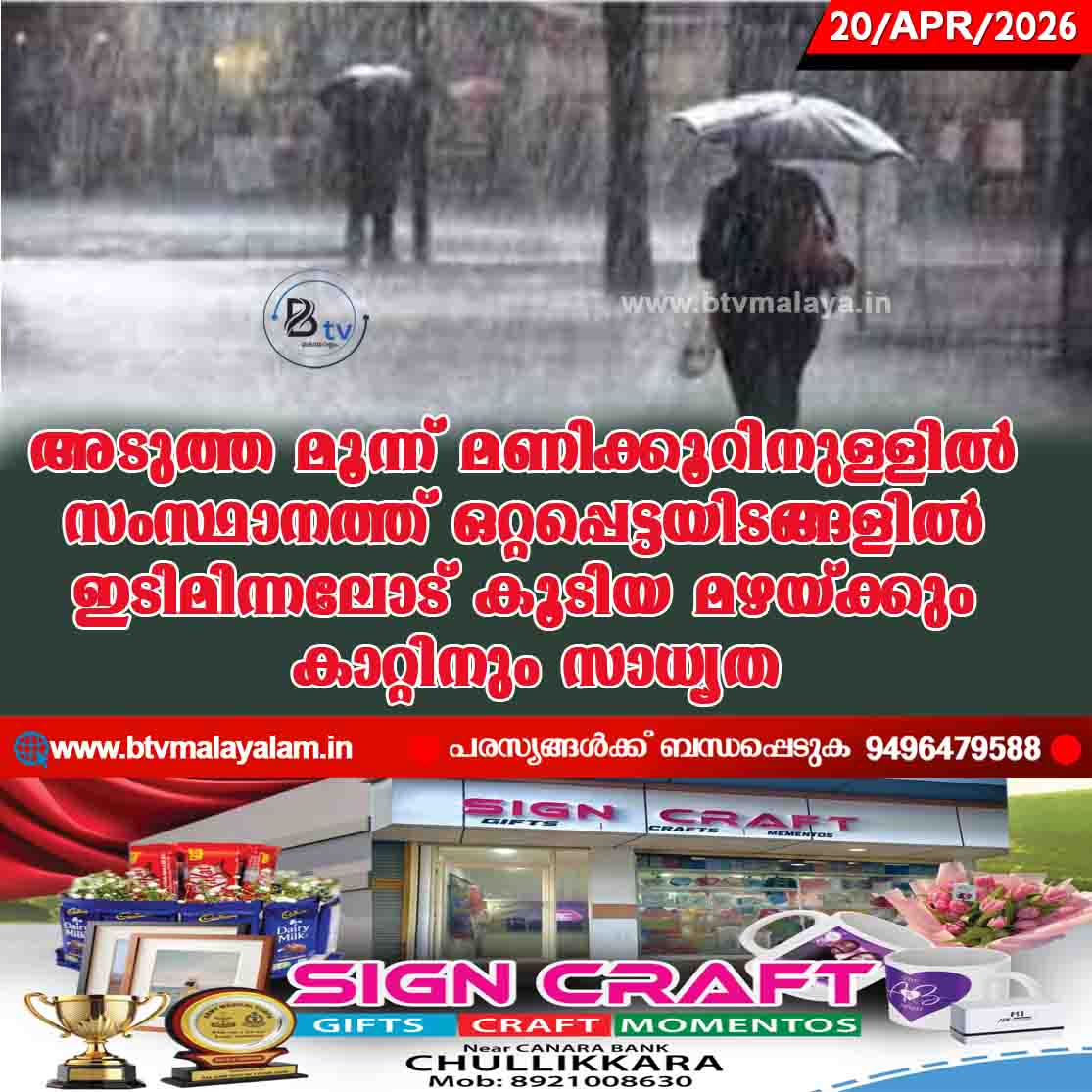 ▪️തിരുവനന്തപുരം: സംസ്ഥാനത്തെ കനത്ത ചൂടിന് ആശ്വാസമേകാൻ മഴയെത്തുന്നു.അടുത്ത മൂന്ന് മണിക്കൂറിനുള്ളിൽ കേരളത്തിലെ ഒറ്റപ്പെട്ടയിടങ്ങളിൽ ഇടിമിന്നലോട് കൂടിയ മഴയ്ക്കും ശക്തമായ കാറ്റിനും സാധ്യതയുണ്ടെന്ന് കേന്ദ്ര കാലാവസ്ഥ വകുപ്പിന്റെ പ്രവചനം.…