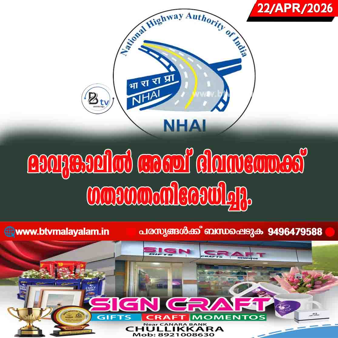 കാഞ്ഞങ്ങാട്: നാഷണൽ ഹൈവേ 66-ന്റെ നിർമ്മാണ പ്രവർത്തനങ്ങളുടെ ഭാഗമായി, കാഞ്ഞങ്ങാട് മാവുങ്കാൽ ജംഗ്ഷനിൽ ഡ്രെയിനേജ് പൈപ്പ് ലൈൻസ്ഥാപിക്കുന്നതിനായി റോഡിൽ കുഴിയെടുക്കുന്നതിനാൽ, 24.04.2026 രാവിലെ 8 മണി മുതൽ…