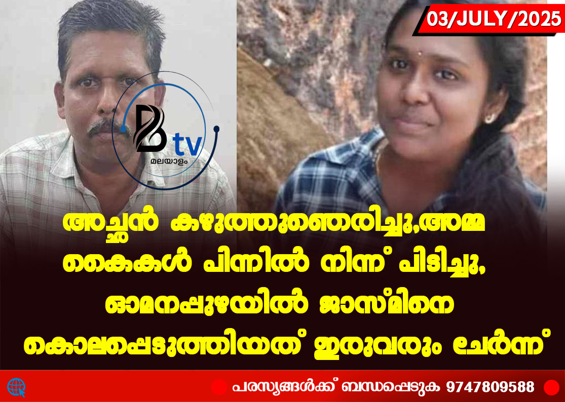 ആലപ്പുഴ: ഓമനപ്പുഴ കൊലപാതകത്തില് കൂടുതല് വഴിത്തിരിവ്. മകള് ജാസ്മിനെ കൊലപ്പെടുത്തിയത് അമ്മയും അച്ഛനും ചേര്ന്നെന്ന് പൊലീസ്. പിതാവ് ജോസ്മോന് കഴുത്തുഞെരിച്ചപ്പോള് മാതാവ് ജെസി ജാസ്മിന്റെ കൈകള് പിന്നില്…