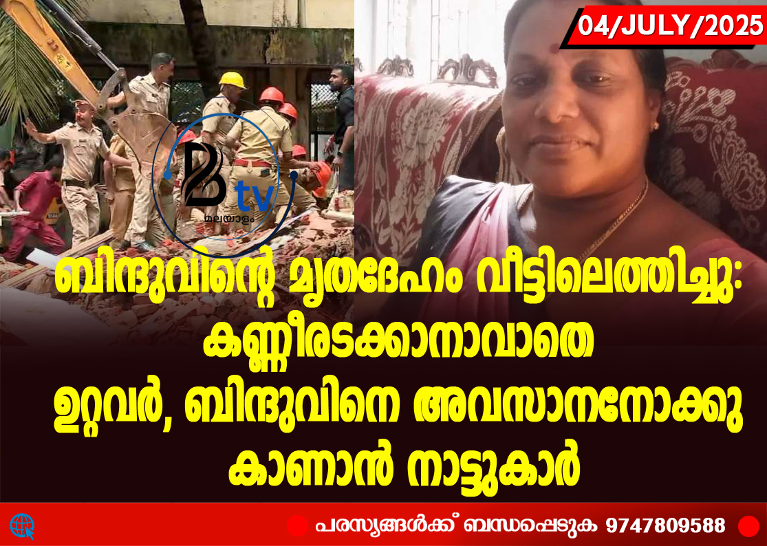 കോട്ടയം: കോട്ടയം മെഡിക്കൽ കോളേജിൽ കെട്ടിടം തകർന്നുണ്ടായ അപകടത്തിൽ മരിച്ച ബിന്ദുവിൻ്റെ മൃതദേഹം വീട്ടിലെത്തിച്ചു. തലയോലപ്പറമ്പിലെ വീട്ടിൽ അൽപ്പസമയം മുമ്പാണ് മൃതദേഹം എത്തിച്ചത്. വികാരനിർഭരമായ രംഗങ്ങളാണ് വീട്ടിൽ…