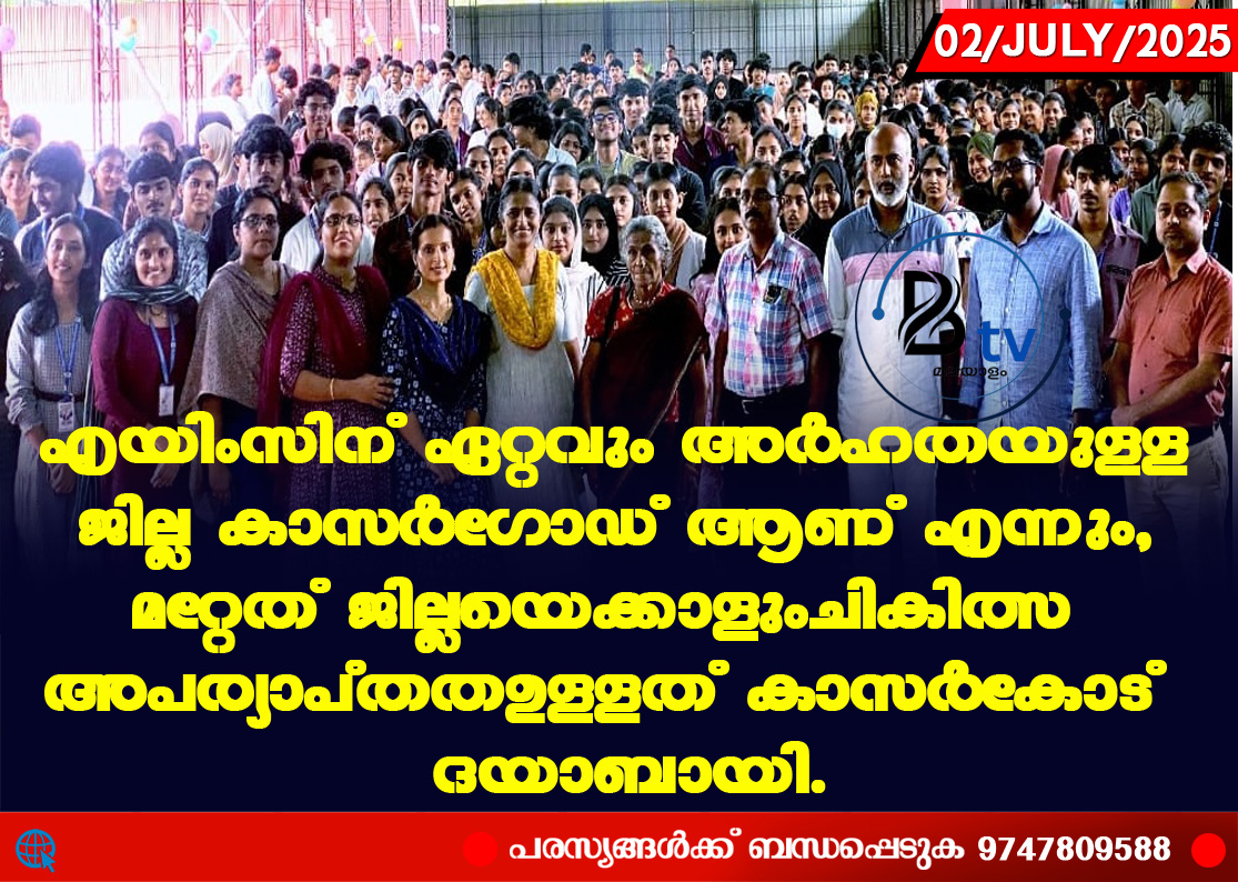 രാജപുരം:കേരളത്തിൽ എയിംസിന് ഏറ്റവും അർഹതയുള്ള ജില്ല കാസർഗോഡ് ആണ് എന്നും, മറ്റേത് ജില്ലയെക്കാളും ചികിത്സ അപര്യാപ്തത ഉള്ളത് കാസർകോട് എന്നും ദയാബായി. രാജപുരം സെൻറ് പയസ് ടെന്ത്…