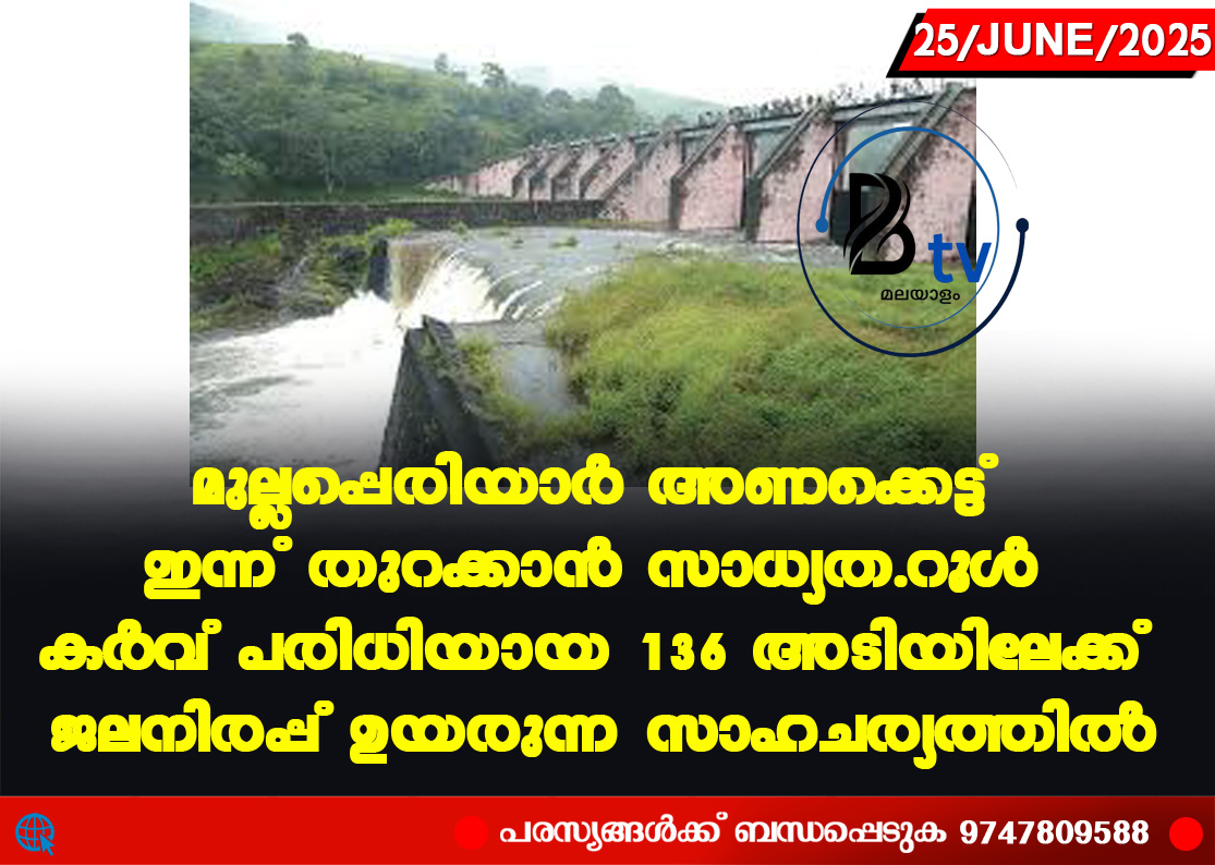 മുല്ലപ്പെരിയാർ അണക്കെട്ട് ഇന്ന് തുറക്കാൻ സാധ്യത. റൂൾ കർവ് പരിധിയായ 136 അടിയിലേക്ക് ജലനിരപ്പ് ഉയരുന്ന സാഹചര്യത്തിൽ ഡാം തുറക്കാൻ സാധ്യതയുണ്ടെന്ന് ജില്ലാ അധികൃതർ മുന്നറിയിപ്പ് നൽകിയിരുന്നു.…