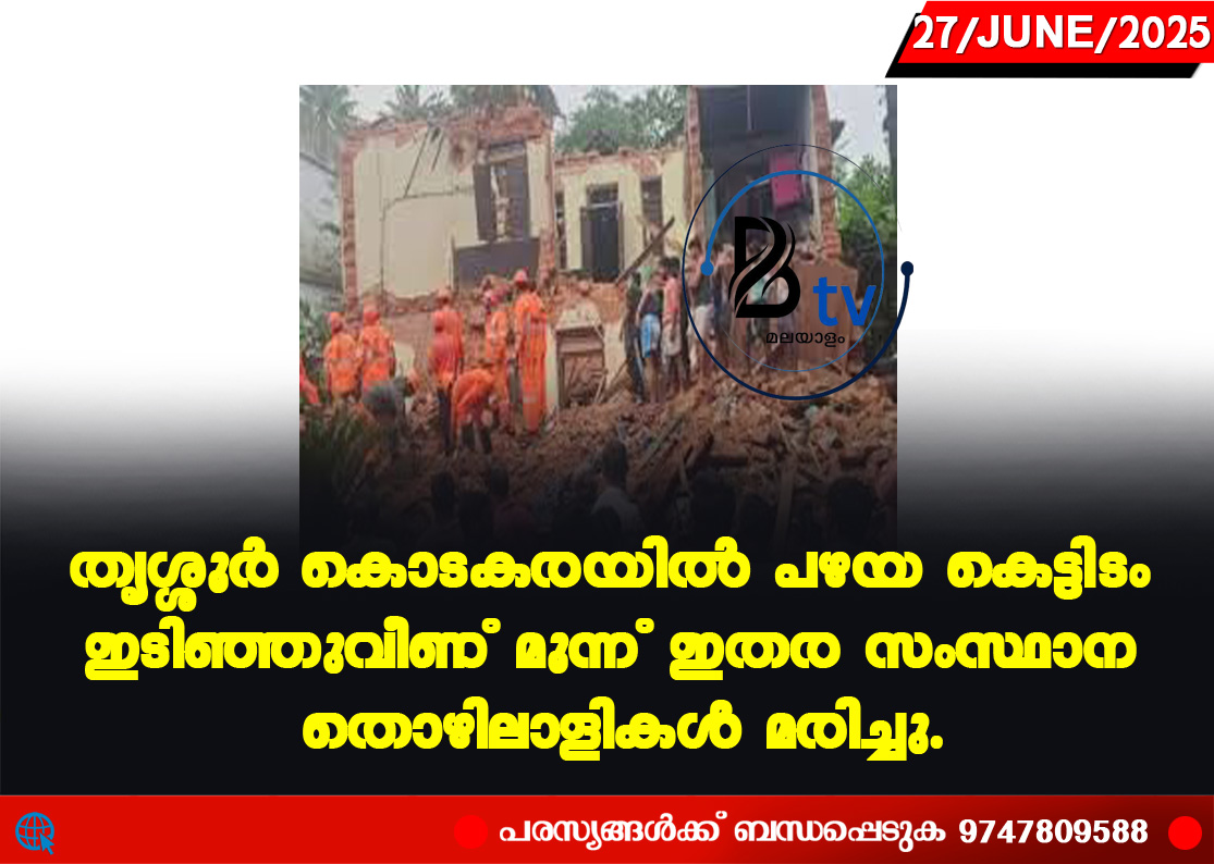 തൃശ്ശൂർ: തൃശ്ശൂർ കൊടകരയിൽ പഴയ കെട്ടിടം ഇടിഞ്ഞുവീണ് മൂന്ന് ഇതര സംസ്ഥാന തൊഴിലാളികൾ മരിച്ചു. പശ്ചിമബംഗാൾ സ്വദേശികളായ രൂപേൽ, രാഹുൽ, ആലിം എന്നിവരാണ് മരിച്ചത്. കെട്ടിടത്തിന്റെ അവശിഷ്ടങ്ങള്ക്കിടയില്…