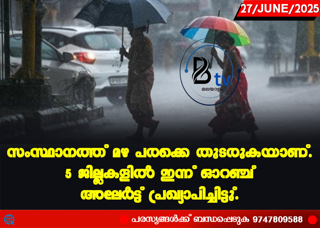 കൊച്ചി: സംസ്ഥാനത്ത് മഴ പരക്കെ തുടരുകയാണ്. 5 ജില്ലകളിൽ ഇന്ന് ഓറഞ്ച് അലേർട്ട് പ്രഖ്യാപിച്ചിട്ടുണ്ട്. എറണാകുളം, ഇടുക്കി, തൃശ്ശൂർ, മലപ്പുറം വയനാട് ജില്ലകളിലാണ് ഓറഞ്ച് അലേർട്ട് പ്രഖ്യാപിച്ചിരിക്കുന്നത്.…