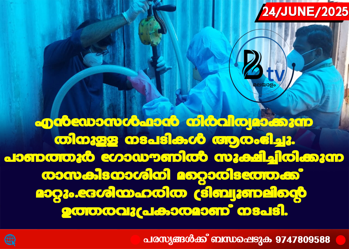 25 വർഷങ്ങൾക്ക് ശേഷമാണ് എൻഡോസൾഫാൻ നിർവര്യമാക്കുന്ന സുപ്രധാന നടപടിയിലേക്ക് കടന്നിരിക്കുന്നത് രാജപുരം, പെരിയ, പിസികെ എസ്റ്റേറ്റുകളിലെ ഗോഡൗണുകളിൽ സൂക്ഷിച്ചിരിക്കുന്ന 1105 ലിറ്റർ എൻഡോസൾഫാനാണ് നിർവീര്യമാക്കുന്നത്. ആദ്യ നടപടിയായി…