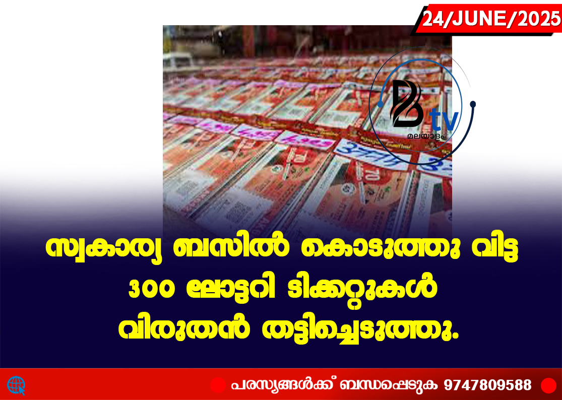 സ്വകാര്യ ബസിൽ കൊടുത്തു വിട്ട 300 ലോട്ടറി ടിക്കറ്റുകൾ വിരുതൻ തട്ടിച്ചെടുത്തു. തൃക്കരിപ്പൂർ തമ്പുരാൻ ലോട്ടറി സ്റ്റാളിലേക്ക് കൊടുത്തു വിട്ട ചൊവ്വാഴ്ച നറുക്കെടുത്ത സത്രീശക്തി ഭാഗ്യക്കുറി ടിക്കറ്റുകളാണ്…