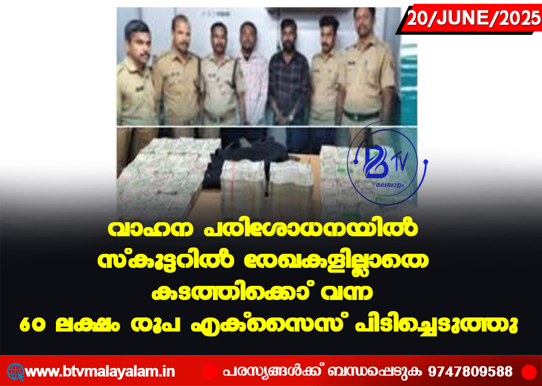 പാലക്കാട്: വാളയാർ ചെക്ക്പോസ്റ്റിൽ നടന്ന വാഹന പരിശോധനയിൽ സ്കൂട്ടറിൽ രേഖകളില്ലാതെ കടത്തിക്കൊണ്ട് വന്ന 60 ലക്ഷം രൂപ എക്സൈസ് പിടിച്ചെടുത്തു. പാലക്കാട് ചിറ്റൂർ സ്വദേശി രതീഷ് (40),…