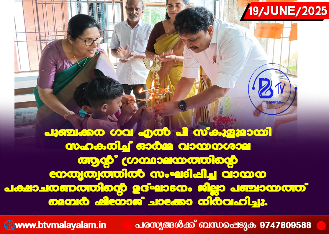 രാജപുരം വായന പക്ഷാചരണത്തിന്റെ ഉദ്ഘാടനവും, പി എന് പണിക്കര് അനുസ്മരണവും സംഘടിപ്പിച്ചു. പുഞ്ചക്കര ഗവ എല് പി സ്കൂളുമായി സഹകരിച്ച് ഓര്മ്മ വായനശാല ആന്റ് ഗ്രന്ഥാലയത്തിന്റെ നേതൃത്വത്തില്…