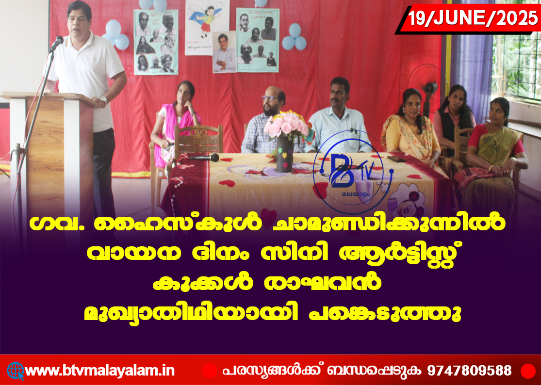 ചാമുണ്ഡിക്കുന്ന്: ഗവ. ഹൈസ്കൂൾ ചാമുണ്ഡിക്കുന്നിൽ ജൂൺ 19 വായന ദിനം വിപുലമായ പരിപാടികളോടെ സംഘടിപ്പിച്ചു. സ്കൂൾ ഓഡിറ്റോറിയത്തിൽ വെച്ച് നടന്ന ചടങ്ങിൽ പ്രധാനാധ്യാപകൻ പി.അശോകൻ സ്വാഗതം പറഞ്ഞു.…