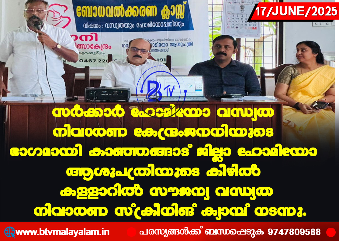 രാജപുരം, കള്ളാർ: സര്ക്കാര് ഹോമിയോ വന്ധ്യത നിവാരണ കേന്ദ്രം ജനനിയുടെ ഭാഗമായി കാഞ്ഞങ്ങാട് ജില്ലാ ഹോമിയോ ആശുപത്രിയുടെ കീഴില് കള്ളാറിൽ സൗജന്യ വന്ധ്യത നിവാരണ സ്ക്രീനിങ് ക്യാമ്പ്…