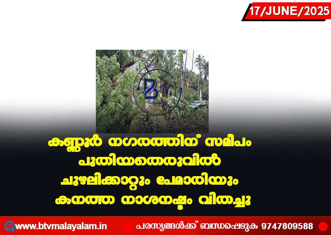 നഗരത്തിന് സമീപം പുതിയതെരുവിൽ തിങ്കളാഴ്ച പുലർച്ചെയുണ്ടായ ശക്തമായ ചുഴലിക്കാറ്റിലും പേമാരിയിലും വ്യാപക നാശനഷ്ടം. പുതിയതെരു മാർക്കറ്റിനുള്ളിലെ ശിവാനന്ദ ഹോട്ടലിന്റെ മേൽക്കൂര പൂർണമായും തകർന്നു. കെട്ടിടത്തിന്റെ മേൽക്കൂരയിലുണ്ടായിരുന്ന ഓടുകളിൽ…